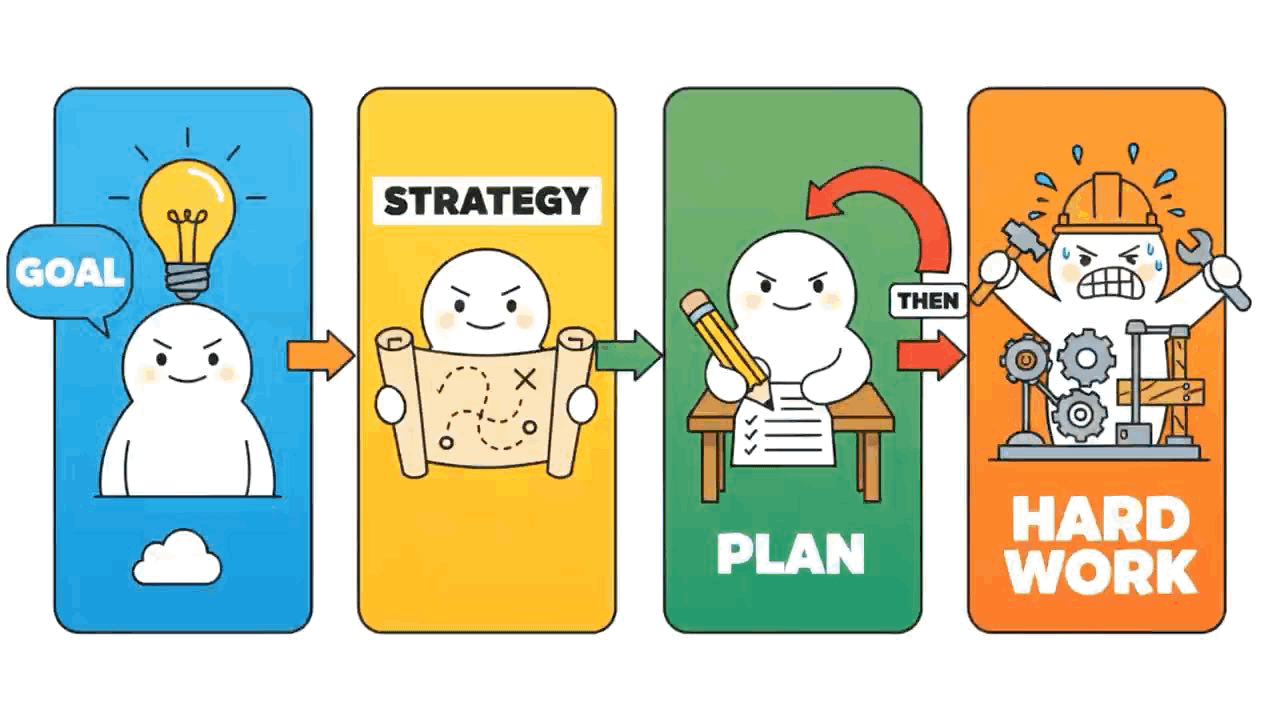 Before we talk about hard work, let's see where strategy fits into the big picture.