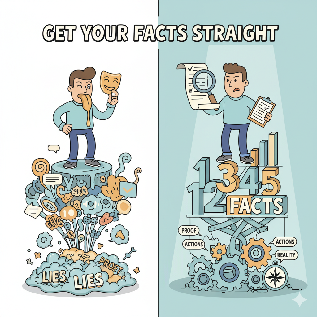 Most people are exceptionally good with words - a tongue dripping with honey and a gift to recognize and tell you exactly what you need to hear. People lie, but accurate facts, actions, and numbers will never lie to you; they are the closest you will ever get to reality, making wise decisions and seeing proof of someone's competence.